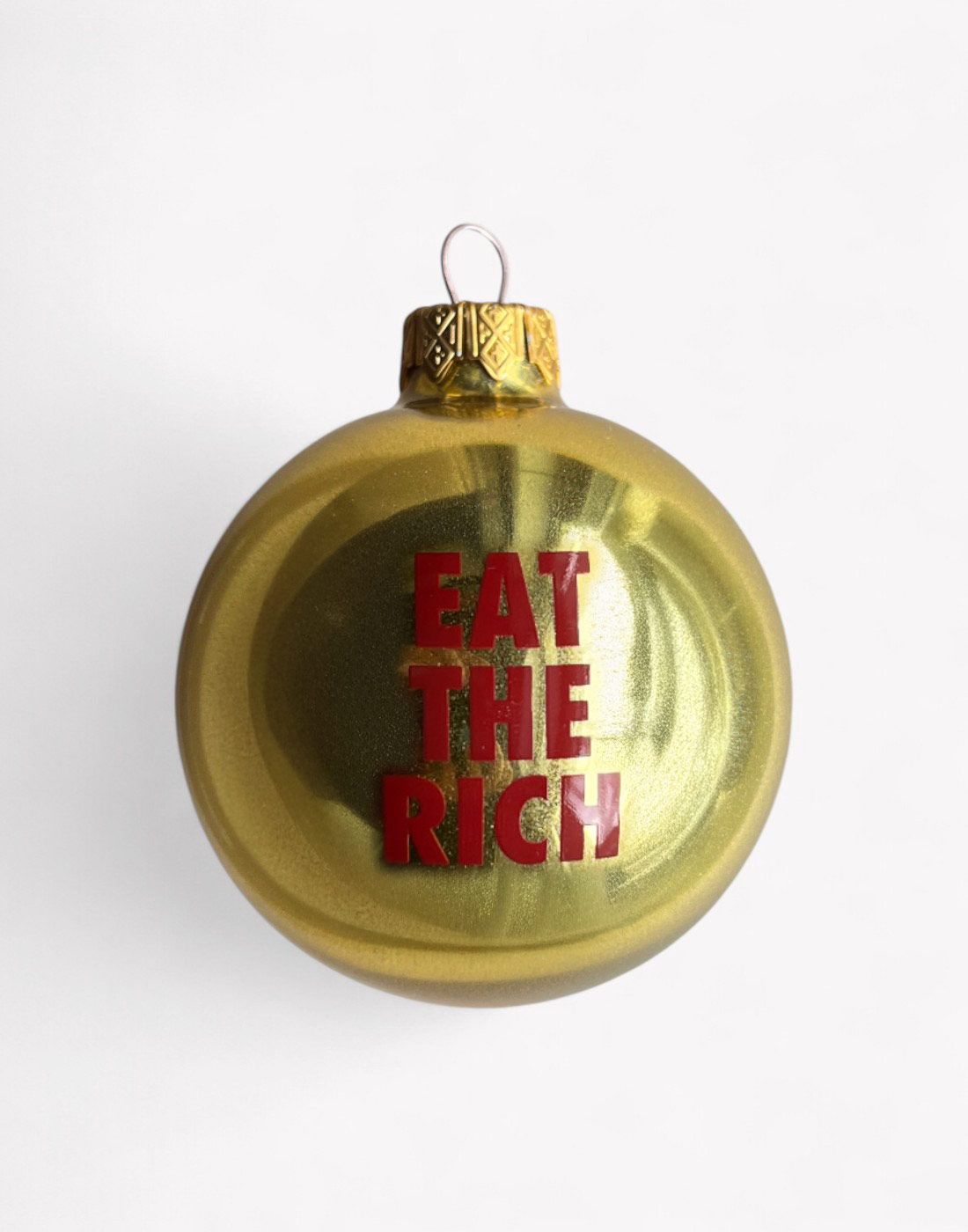 Es gibt keine Artikel mehr in Ihrem WarenkorbFür alle, die eine Alternative zur klassischen braven Weihnachtsdeko suchen und dabei noch ein kleines Statement setzen wollen, sind unsere Weihnachtsbaumkugeln genau die richtige Wahl. Die Eat The Rich-Weihnachtsbaumkugeln sind aus Glas hergestellt und haben einen Durchmesser von 66 mm. In Sachen Weihnachtsdeko macht sie qualitativ einiges her und taugt tatsächlich auch zur Verschönerung eurer weihnachtlichen Kulisse.