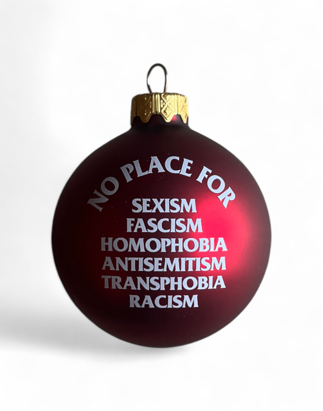 Für alle, die eine Alternative zur klassischen braven Weihnachtsdeko suchen und ein Statement gegen Diskriminiserung setzen möchten, sind unsere roten "No Place For" - Weihnachtsbaumkugeln genau die richtige Wahl. Die "No Place For" - Weihnachtsbaumkugeln sind aus Glas hergestellt und haben einen Durchmesser von 66 mm. Unser Zweitversuch in Sachen Weihnachtsdeko macht qualitativ einiges her und taugt tatsächlich auch zur Verschönerung eurer weihnachtlichen Kulisse.