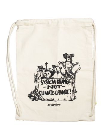 Beutel & Taschen System Change Not Climate Change - Beutel 12,00 € DetailsFarbe: beige Materiel: 100% Bio-Baumwolle Stärke: 340 g/m² Maße: 38 x 42 cm In den Warenkorb