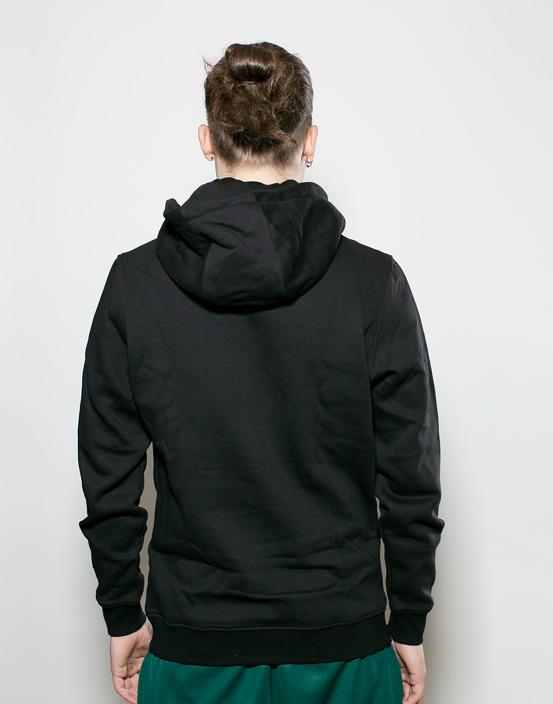 - schwarzer Stick auf der linken Brust (Schriftzug Mob Action)