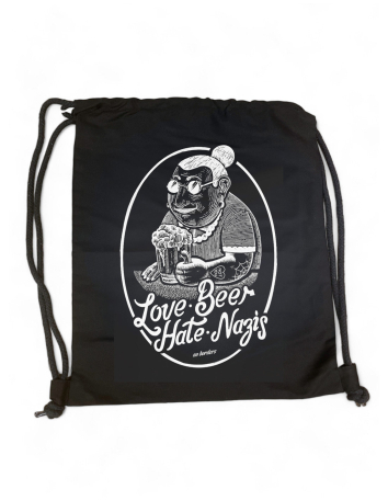 No Borders - Beutel Love Beer Hate Nazis 2.0 - Turnbeutel - Black 10,00 € Love Beer Hate Nazis 2.0 TurnbeutelFarbe: Schwarz Motiv: Love Beer Hate Nazis 2.0 (Oma) Material: 100% Baumwolle Qualität: 140g/m² Maße: 30 x 32cm Fassungsvermögen: 12 Liter In den Warenkorb