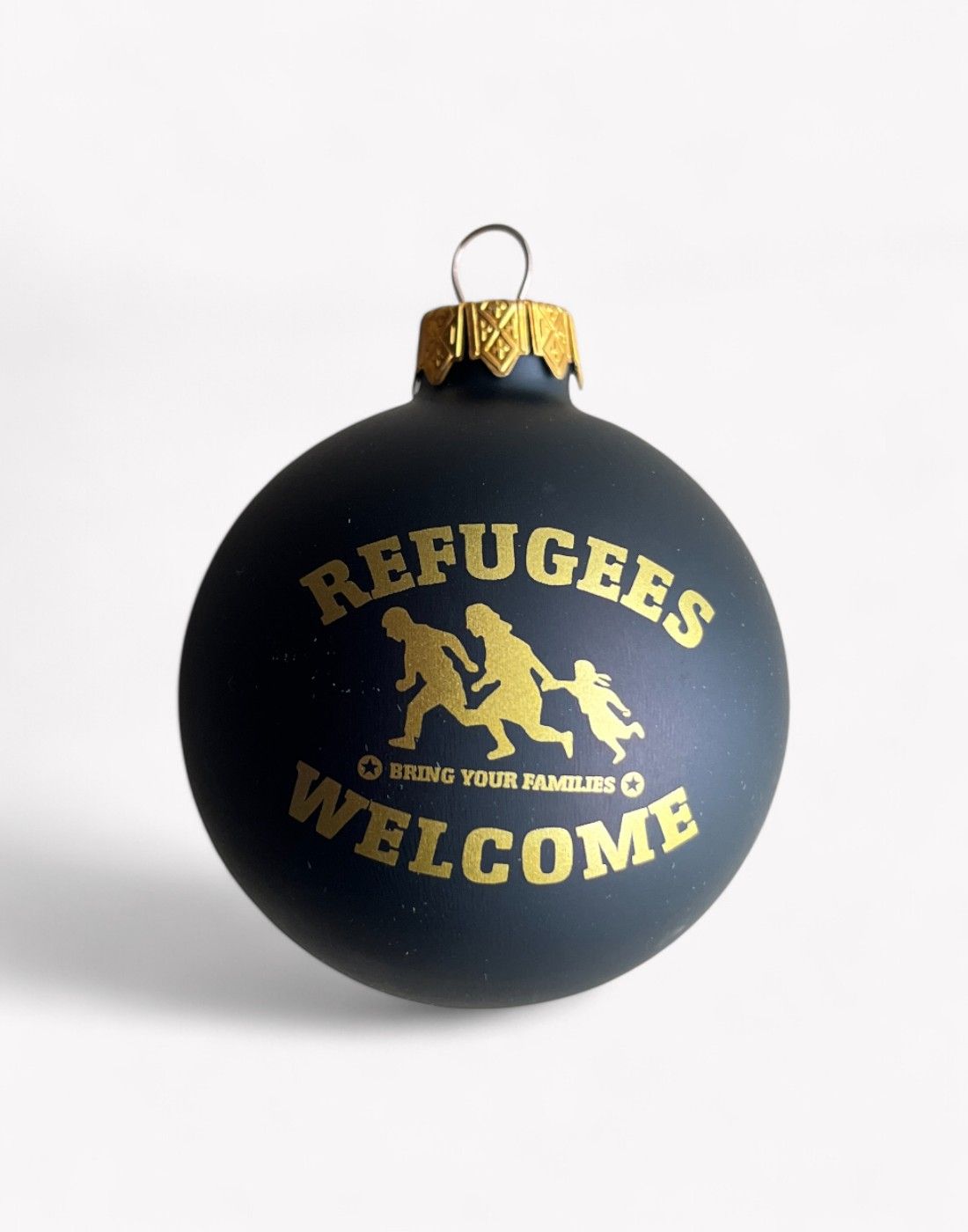 Es gibt keine Artikel mehr in Ihrem WarenkorbFür alle, die eine Alternative zur klassischen braven Weihnachtsdeko suchen und dabei noch ein kleines Statement setzen wollen, sind unsere Weihnachtsbaumkugeln genau die richtige Wahl. Die Refugees Welcome-Weihnachtsbaumkugeln sind aus Glas hergestellt und haben einen Durchmesser von 66 mm. In Sachen Weihnachtsdeko macht sie qualitativ einiges her und taugt tatsächlich auch zur Verschönerung eurer weihnachtlichen Kulisse.