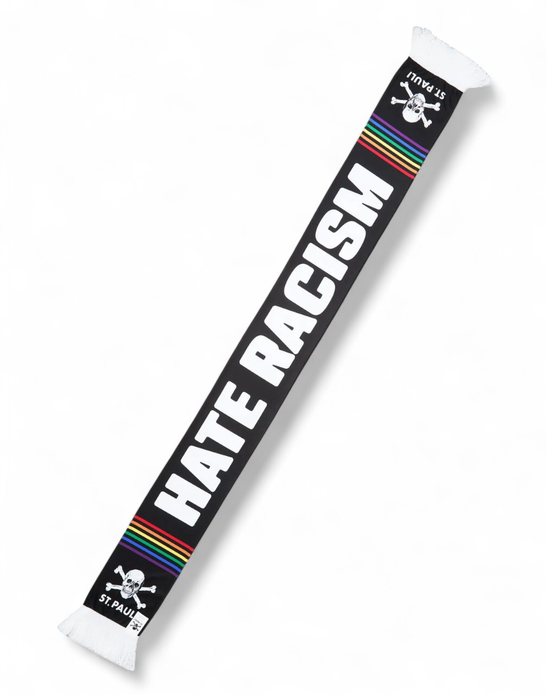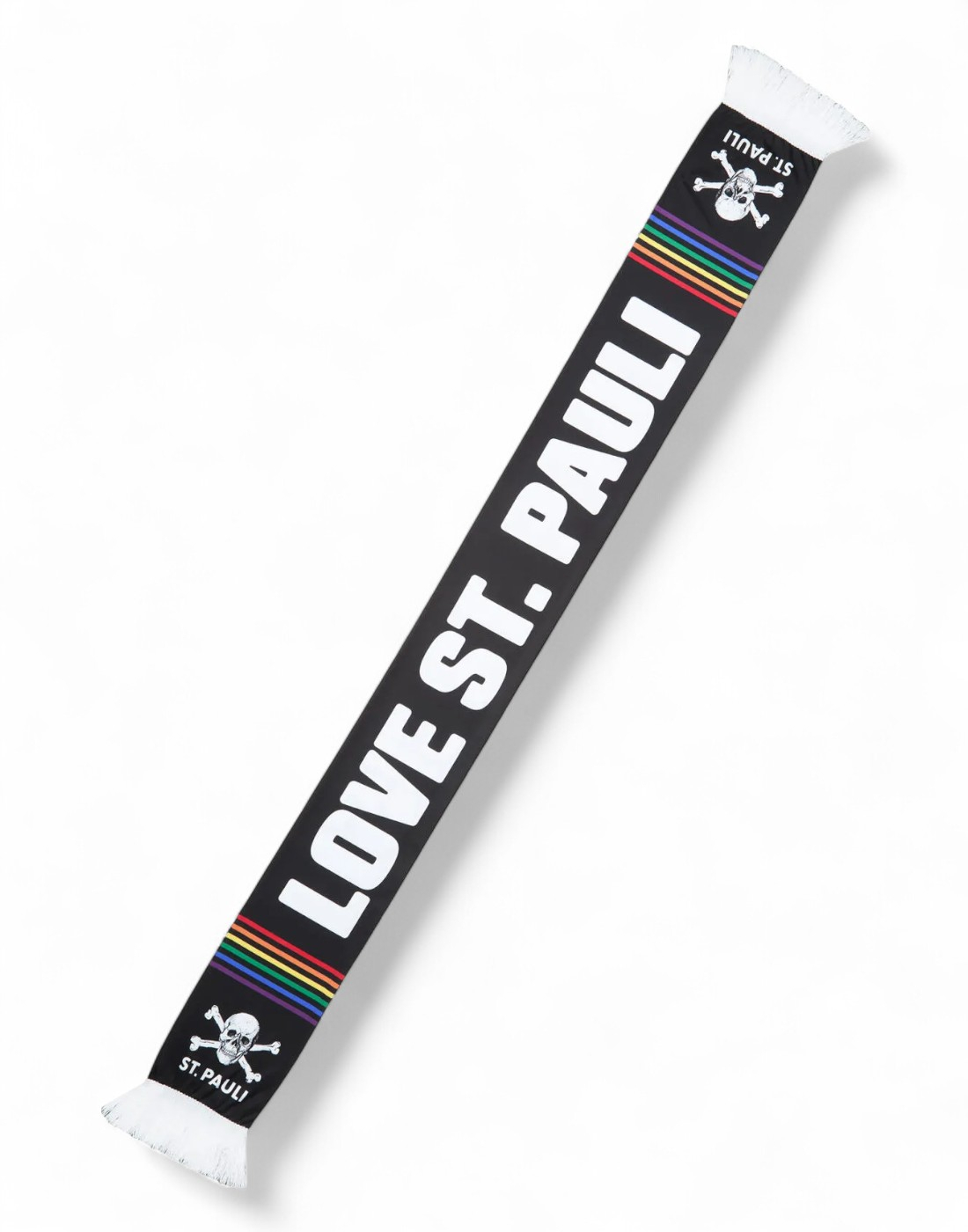 Es gibt keine Artikel mehr in Ihrem WarenkorbMach ein klares Statement mit dem FC St. Pauli Seidenschal Love! Der dünne, leichte Schal in Schwarz trägt die Aufschrift "LOVE ST. PAULI" und "HATE RACISM" mit Regenbogenstreifen und Totenkopf-Design. Perfekt für Stadionbesuche und den Alltag. Hergestellt aus 100% recyceltemPolyester – nachhaltig und voller Haltung.