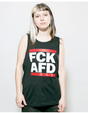 No Borders - Jackets FCK AfD - Tanktop - No Borders - Black €23.00 FCK AfD - Tank topColour: Black unisex Outer fabric: single jersey Material: 100% ring-spun organic cotton Add to cart