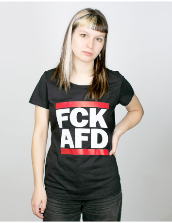 T-Shirts FCK AfD - T-Shirt - Tailliert - No Borders - Schwarz €20.00 fitted shirt - FCK AfDColour: Black Material: Shell - Loose knit single jersey, 100 % cotton, organic carded, panel washed, 180 gsm Set-in sleeves 1x1 rib on the collar Neckband inside made from the same material Double-stitched topstitching on the cuffs and hem Certifications: Fair Wear Foundation, GOTS, Vegan (PETA approved), ÖKO Tex Standard 100... Add to cart