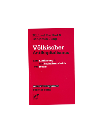 Sachbücher Völkischer Antikapitalismus? €7.80 Eine Einführung in die Kapitalismuskritik von rechts Michael Barthel, Benjamin Jung ISBN: 978-3-89771-114-3 Erscheinungsdatum: August 2013 Seiten: 88 Reihe: unrast transparent | rechter rand Band: 9 Ausstattung: softcover Add to cart