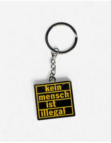Here you can find the complete selection of key chains and items with the Kein Mensch ist illegal logo in our shop.