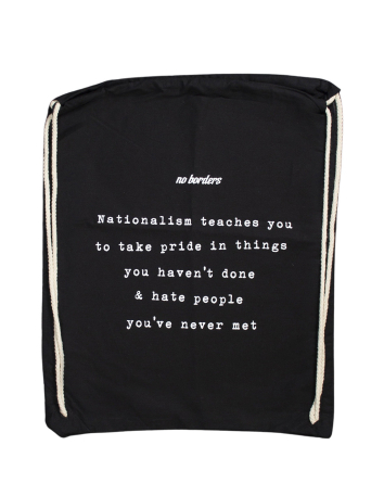 No Borders - Bags Nationalism Sucks - Gymsac €10.00 Farbe: Schwarz Material: 100% BaumwolleNationalism teaches you to take pride in things you haven't done & hate people you've never met Add to cart