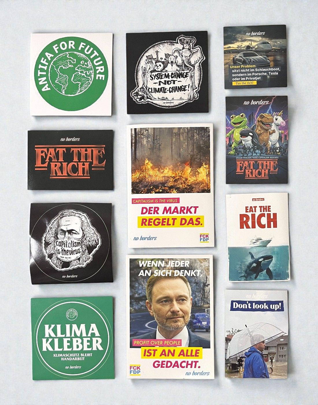 Sticker Sticker Mix - Antifa No Borders €2.00 Mix aus 10 verschiedenen Antifa-Stickern in unterschiedlichen Größen und Formaten. Add to cart