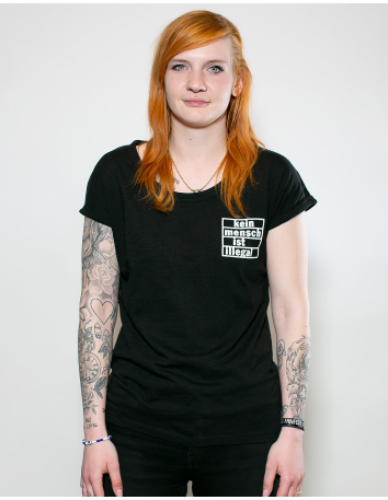 No Borders - unisex Shirts Kein Mensch ist illegal - No Borders - T-Shirt - White/Black €25.00 Colour: White with black embroidery Material: 100% combed organic cotton Certifications: Fair Wear Foundation, GOTS, Vegan (PETA approved), ÖKO Tex Standard 100 Add to cart