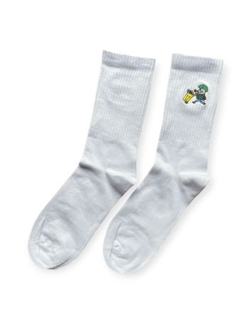 Political - Socks Riot Pigs - Socks - Embroidered logo - White €10.00 Socks - with riot pig logo embroideryColour: white Embroidery logo Riot Pig Country of manufacture: Turkey Material: 80% cotton, 15% polyamide, 5% elastane Add to cart