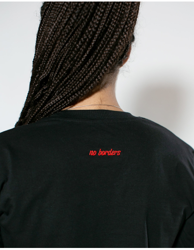 No Borders - unisex Shirts Kein Mensch ist illegal - No Borders - T-Shirt - White/Black €25.00 Colour: White with black embroidery Material: 100% combed organic cotton Certifications: Fair Wear Foundation, GOTS, Vegan (PETA approved), ÖKO Tex Standard 100 Add to cart