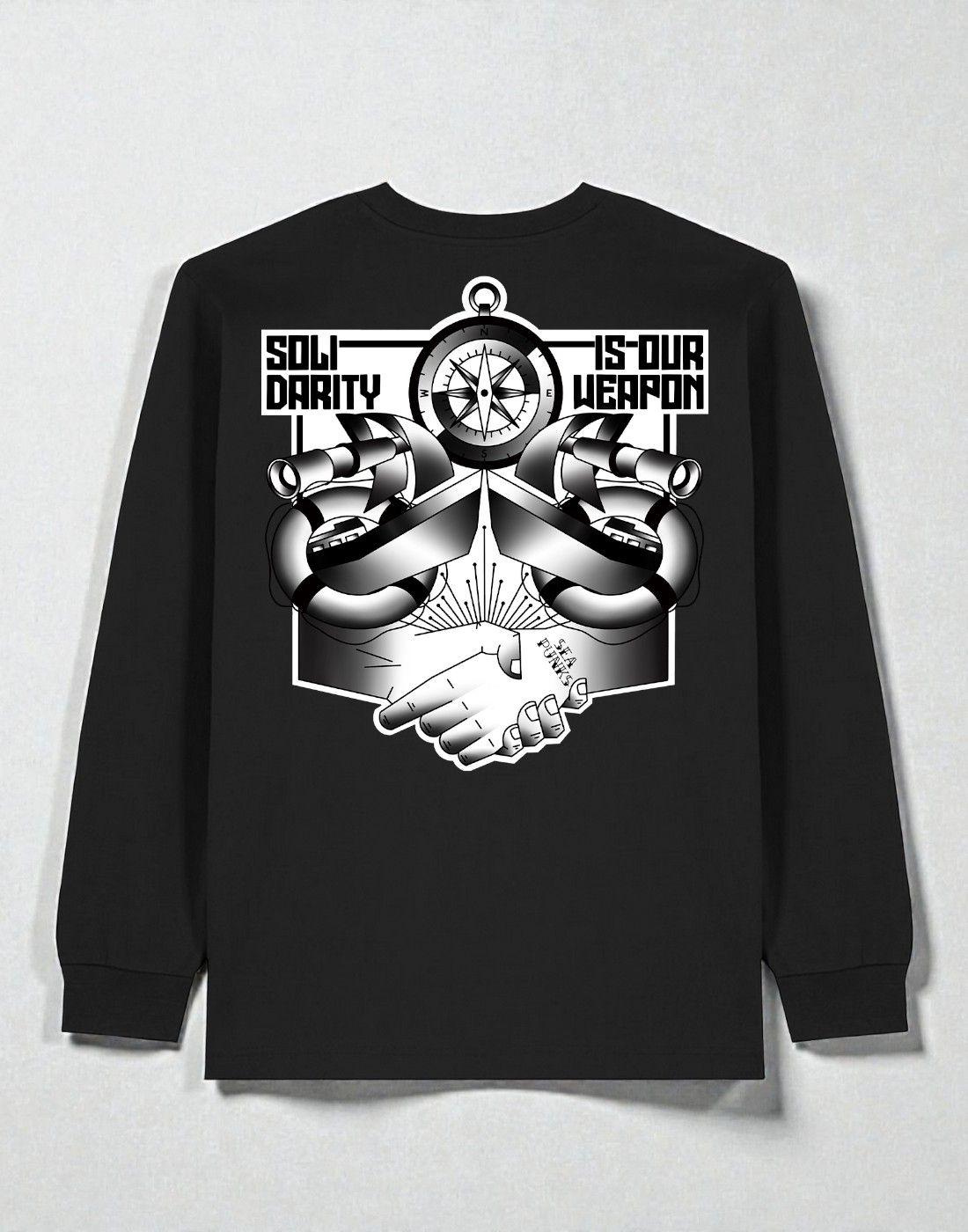 New Last items in stock Home Sea Punks - Hoodie - 1st Mission - Black Sea Punks €50.00 Item descriptionColour: black with white print Design: 1st Mission with high-quality screen printing on both sides Material: 100% cotton organic quality Machine wash at 30°C, wash with similar colours Manufacturer according to GPSR: Merchcowboy GmbH & Co. KG | Friedrich-Ebert-Straße 7 | 48153 Münster | support@merchcowboy.comHere you can find the... Add to cart