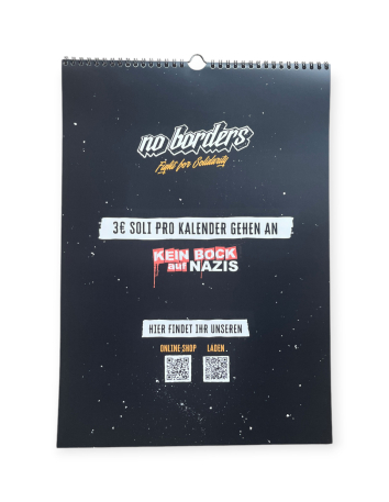 -€11.00 No Borders - Accessoires No Borders - SOLI Calendar 2024 €3.00 €14.00 3€ per calendar go to Mission LifelineFormat: A3 Add to cart