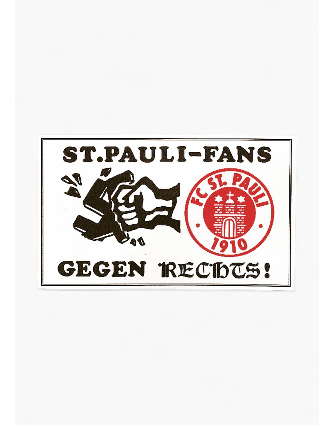 There are no more items in your cart"Never again" is now! With the FC St. Pauli "Against Racism" stickers, you make a bold statement for tolerance and diversity. This set includes 50 stickers featuring the striking design with the club logo and the message "St. Pauli Fans Against Racism." Perfect for fans who want to make clear statements on surfaces or inpublic spaces.
