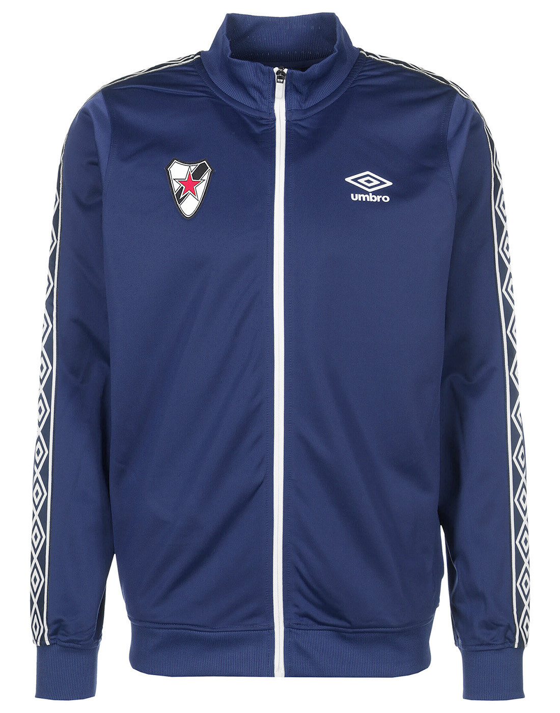 Jackets - Teams Roter Stern Leipzig - Umbro - Track Jacket - Burgundy Roter Stern Leipzig €50.00 Farbe: Burgundy / Dark Red Material: 100% Polyester Umbro Trainings Top mit durchgehendem Reisverschluss RSL Web-Patch & gedrucktes Markenemblem Ausschnitt, Saum und Manschetten in Rippenstrick Zwei TaschenAuch in anderen Farben erhältlich. Add to cart