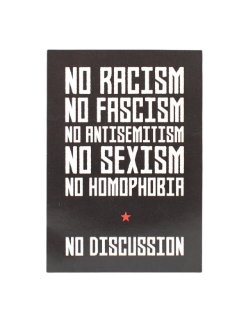 Sticker No Discussion - Sticker €1.00 10 Sticker Motiv: No Discussion Maße: 10,5cm. x 7,4cm Add to cart
