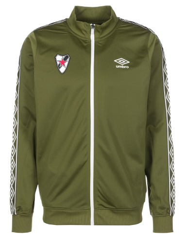 Jackets - Teams Roter Stern Leipzig - Umbro - Track Jacket - Burgundy Roter Stern Leipzig €50.00 Farbe: Burgundy / Dark Red Material: 100% Polyester Umbro Trainings Top mit durchgehendem Reisverschluss RSL Web-Patch & gedrucktes Markenemblem Ausschnitt, Saum und Manschetten in Rippenstrick Zwei TaschenAuch in anderen Farben erhältlich. Add to cart