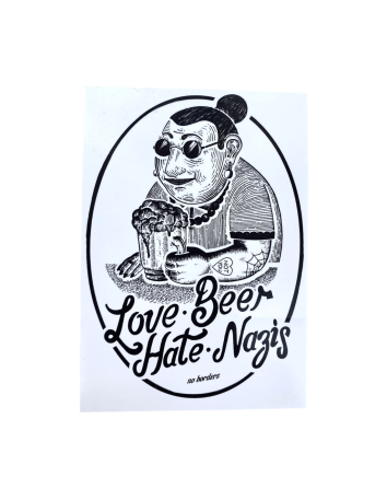 Sticker Love Beer Hate Nazis 2.0 - Sticker €1.00 10 stickersTheme: Love Beer Hate Nazis 2.0 Size: 10.5 cm x 7.4 cm Add to cart