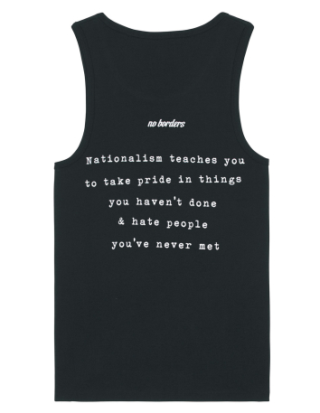 Product available with different options No Borders - Tank Tops Nationalism sucks - No Borders - Tanktop - Black €20.00 Farbe: Schwarz Material: 100 % gekämmte Bio-Baumwolle Motiv:Nationalism teaches you to take pride in things you haven't done & hate people you've never met View