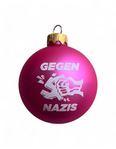For all those who are looking for an alternative to the classic Christmas decoration and want to make a small statement against fascists, our pink Gegen Nazis Christmas tree baubles are just the right choice. The Gegen Nazis Christmas tree baubles are made of glass and have a diameter of 66 mm. Our second attempt at Christmas decorations makes quite an impression in terms of quality and is actually suitable for embellishing your Christmas decorations.